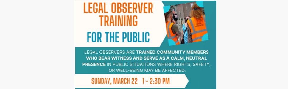 Legal Observers are trained community members who bear witness and serve as a calm,